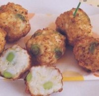 イカに酒、枝豆に片栗粉、塩、コショウの順に加えながら練り混ぜ、12等分して団子にまとめます。180度の揚げ油でカラリとあげるとできあがりです。コメント一覧(0)