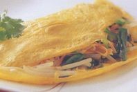 ボウルに卵1個を溶きほぐして塩、こしょう各少々を振ります。フライパンをきれいにし、サラダ油大さじ1/2を熱して卵を流し入れます。半熟のうちにさきほどのもやし類の1/4量をのせて2つ折りにします。残りの3つも同様に作り、器に盛ったらできあがりです。コメント一覧(0)