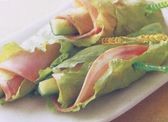 レタスは1枚ずつ広げ、ハム2枚を少しずらして並べ、マヨネーズを塗って塩、コショウを振ります。キュウリを1本のせ、それを芯にして巻き、ピックでとめるとできあがりです。コメント一覧(0)