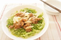 セロリは筋をとり5mm幅の斜め切り、レタスは千切りにする。★STEP2