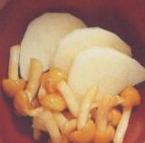 ジャガイモがやわらかくなったらなめこを入れる。★STEP5