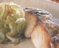 器にさわらを盛り付け、水気を切った長ねぎを添えます。★STEP5