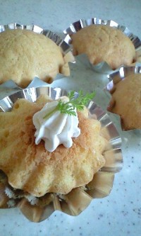 チョットしたおやつに作って冷凍庫にストックすれば急にお客サンが来た時も冷凍庫カラ少し出しておけばOK★いつでも食べれちゃう軽いマフィン♪甘さも控えめ。水を牛乳に変えてもOK★しっとりしたマフィンになります