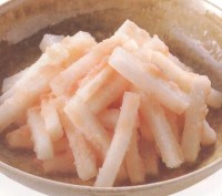 大根の皮をむき、縦5cm、幅7mm程度の拍子切りにします。★STEP2