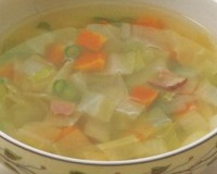 鍋に固形スープと水と玉ねぎ、キャベツ、にんじん、ベーコンを入れて火にかけます。鍋が煮立ったら弱火にし、12分ほど煮込みます。★STEP4