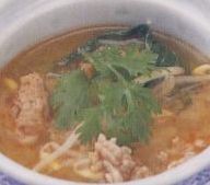 豆板醤、鶏ガラスープの素と水4カップを鍋に入れてさっと煮、味噌を溶き入れてひと煮立ちさせます。★STEP5